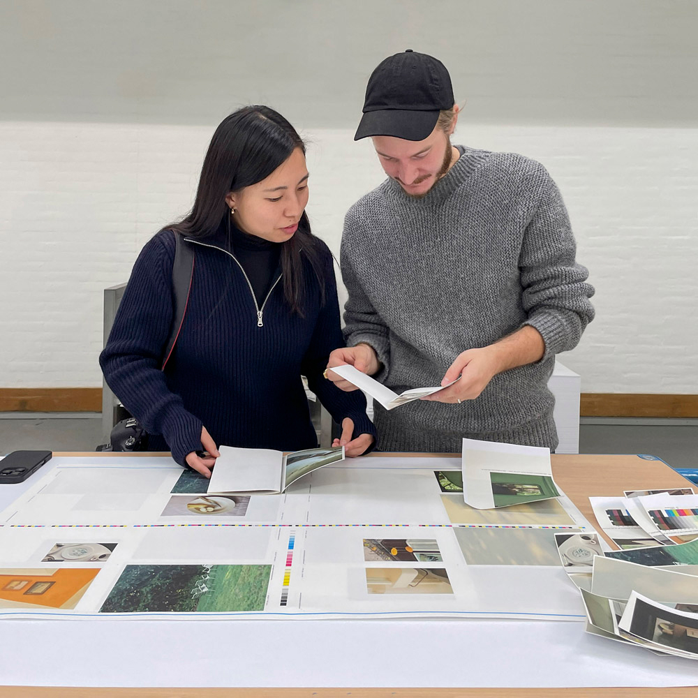 Photographer Maya Matsuura and architect Filip Ivarsson Eckerdal at the printing start-up of ‘fugle’,